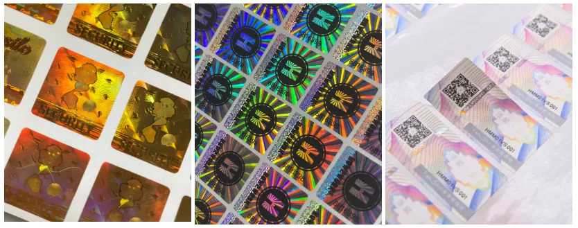 4. হলোগ্রাফিক অ্যান্টি-জাল লেবেল: এই ধরনের লেবেলে মাল্টি-লেয়ার রিফ্লেক্টিভ সারফেস থাকে, বিভিন্ন কোণ থেকে পরিবর্তনের ইমেজ এবং প্যাটার্ন দেখাতে পারে, প্রতিলিপি করা কঠিন, এবং ভিজ্যুয়াল অ্যান্টি-জাল চিহ্ন হিসাবে ব্যবহার করা যেতে পারে।
