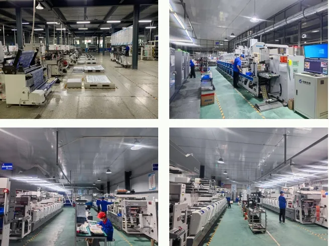 জোজো প্যাক কোম্পানির একটি কারখানা রয়েছে যা 18,000 বর্গমিটার অঞ্চল জুড়ে রয়েছে, 7 টি সম্পূর্ণ স্বয়ংক্রিয় উত্পাদন লাইন সহ, সিএমওয়াইকে প্রিন্টিং মেশিন, ডিজিটাল প্রিন্টিং মেশিন, স্লিটিং মেশিন, রিওয়াইন্ডিং মেশিন, হট স্ট্যাম্পিং মেশিন এবং কাগজের কাটারগুলির মতো একটি সিরিজ উন্নত সরঞ্জামের সাথে সজ্জিত। এটি একটি বৃহত উদ্যোগ বা একটি ছোট এবং মাঝারি আকারের এন্টারপ্রাইজ হোক না কেন, আমরা তাদের OEM এবং ODM প্রয়োজনগুলি পূরণ করতে পারি।
