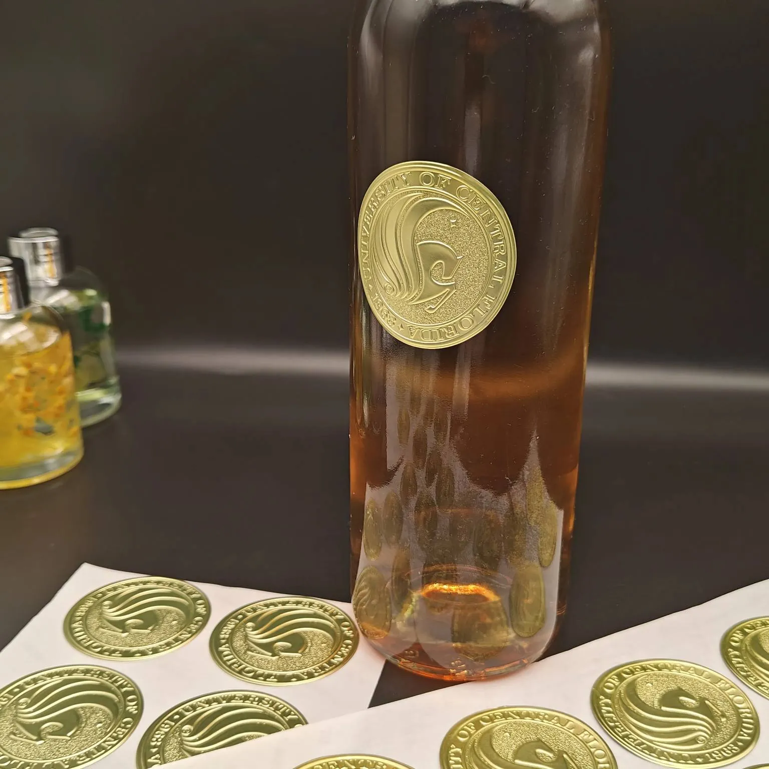 রাউন্ড ফয়েল এমবসড ওয়াইন লেবেলগুলি নিম্নোক্ত কারণে মদ, হুইস্কি, ব্র্যান্ডি, জিন এবং হাই-এন্ড ক্রাফ্ট বিয়ার সহ অ্যালকোহলযুক্ত পানীয় শিল্পে সর্বাধিক ব্যবহৃত হয়:
